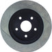 StopTech Slotted Sport Rotors are 1-piece direct replacement brake discs for factory brake systems and stock calipers that look great behind your wheels – and offer significantly improved braking performance. The unique slotting aids with heat and brake dust dispersal; prevents glazing of the pads; adds bite and improves wet and dry braking performance. Built to last; the black e-coating provides protection from corrosion and the high carbon metallurgy (in most applications) offers quieter operation; better crack resistance and increased performance.