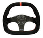 NRG Carbon Fiber Steering Wheel (320mm) Flat Btm. Blk Suede/Red Stitch w/CF Spokes & Red Center Mark