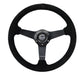 NRG Sport Steering Wheel (350mm / 1.5in Deep) Black Suede/Black Stitch w/Matte Black Solid Spokes