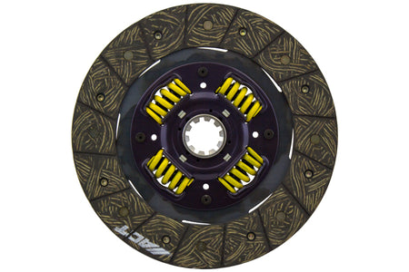 3000815 is a performance street disc and the most popular disc purchased. It features premium organic materials with high copper content for better heat transfer. Performance street discs allow for quicker shifting and smooth engagement. These discs feature a reduced marcel for faster shift action to complement ACT pressure plates. ACT spring-centered assemblies use bushings and cone springs similar to factory clutch discs. This creates frictional dampening, which improves clutch life and reduces noise. Quiet operation with increased strength and reliability.
