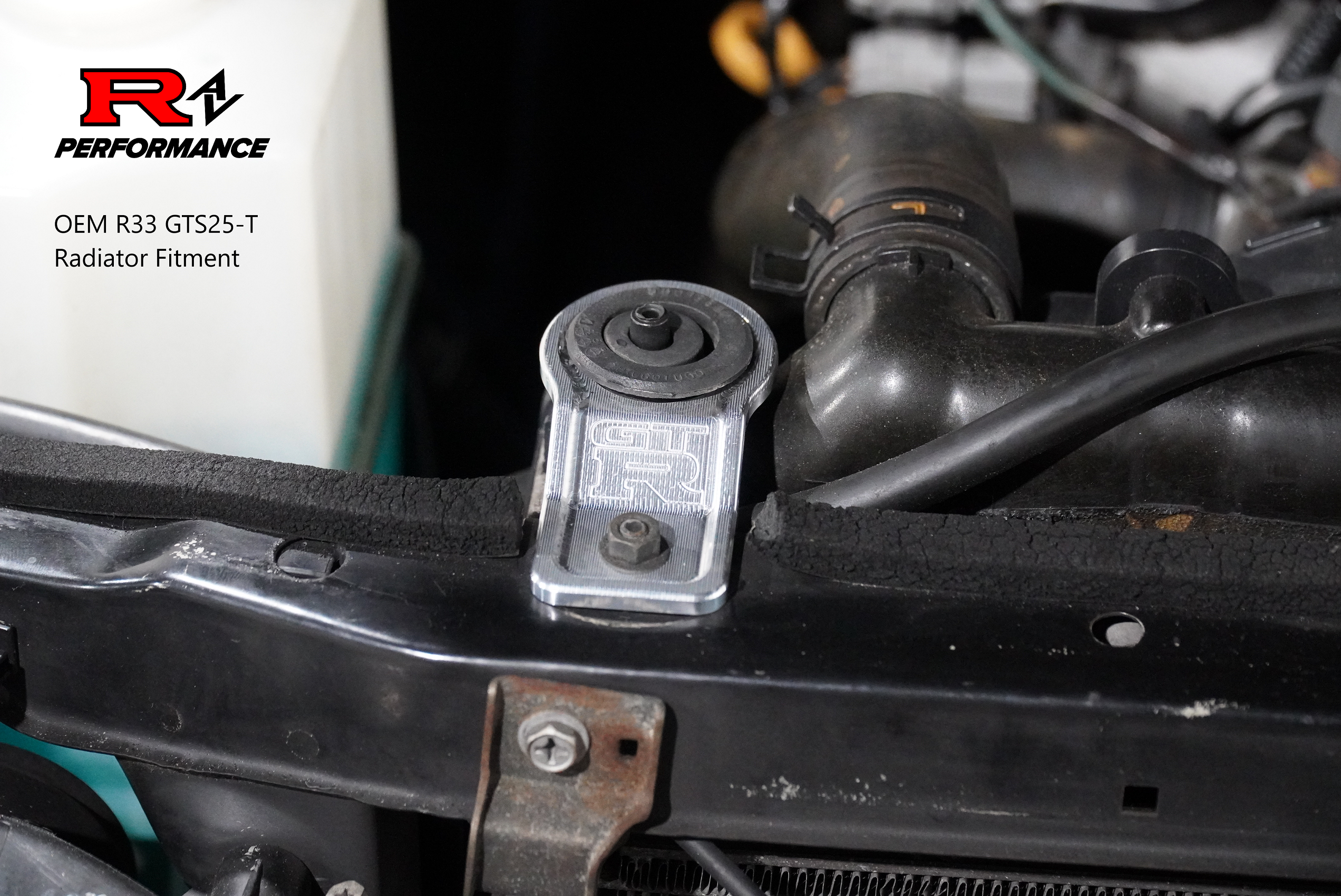 Custom billet radiator mounts that fit all r32 r33 & r34 skylines with factory or after market radiators.
