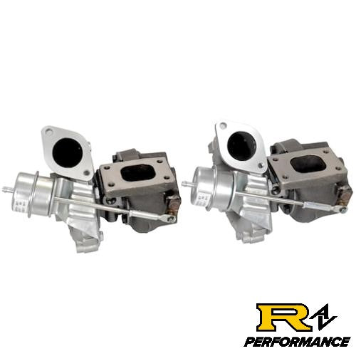 Includes Two (2) turbochargers as a bolt-on twin-turbo solution for stock flange exhaust manifolds and O2 housings/dump pipes!