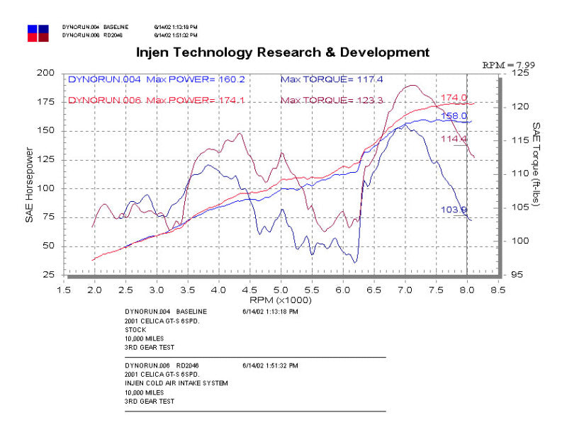Add some easy horsepower to your Ride with this RD Series Performance cold air intake (CAI) from Injen Technology! The engineers at Injen have spent considerable amounts of time designing, testing, and perfecting this CAI to produce some serious bolt-on power while also providing amazing engine bay aesthetics. In addition to the impressive power increase, the Injen team has ensured that safe Air fuel (A/F) ratios are maintained throughout the powerband. , , The soul of this intake is found within our mandrel-bent 6061-T6 aluminum air intake tube that provides a smooth uninterrupted path for highly efficient airflow. This tube reaches into the depths of the engine bay to collect the coolest and densest air available. Additionally, this RD intake also includes a fully serviceable Injen SuperNano-Web dry air filter, which provides increased filter surface area allowing for greater airflow and unbeatable filtration. If that's not enough, the Injen RD performance intake provides power you can hear and feel! This intake provides an aggressive and throaty tone that is unmatched in the aftermarket. Want to add that personalized touch to your intake? Injen also offers this intake system in a polished or a powder-coated Black finish. To top it all off, this RD CAI kit includes the unbeatable Injen Technology limited Lifetime Warranty!,