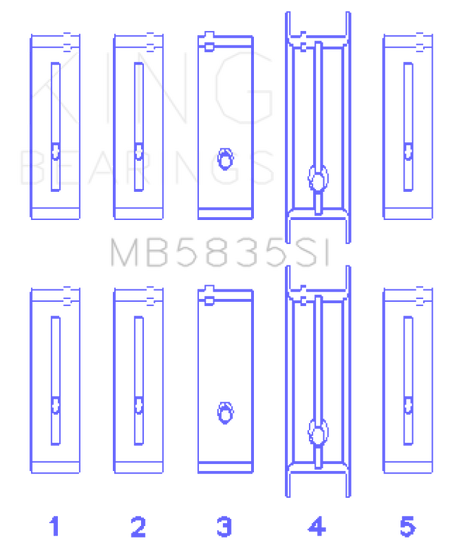 MAIN BEARING SET For CHEVROLET 121ci, LN2 134ci +.002 OS/OD version of MB5088SI; bimetal (aluminum silicon base)