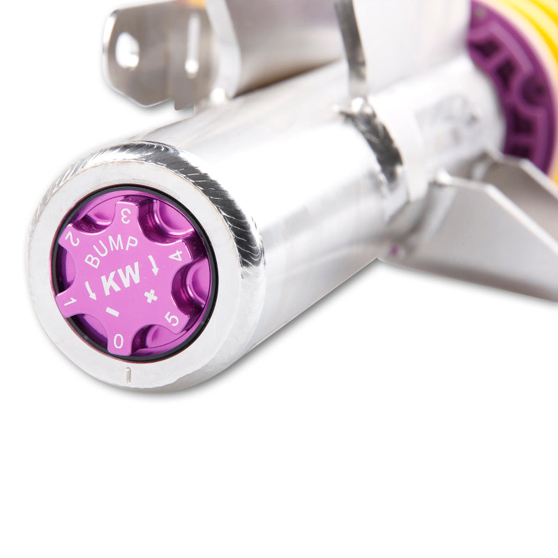 Designed to maximize the performance on vehicles with DOT-R and other ultra high-performance tire setups. KW V3 Clubsport coilovers are the ideal choice for double-duty street cars, use at HPDE's(high performance drivers education), time attack or time trials, and club level racing. The Clubsport setup was specially designed on the Nordschleife and the continuous adjustable ride height allows for fine corner weight or making setup changes. The TVR-A and TVC-A valve technology -provide an unmatched level of separately adjustable damping for the rebound and compression enabling a customized set up appropriate for the vehicle's modifications such as weight, tire characteristics, and other various conditions. The KW V3 Clubsport INOX-LINE coilover kit is the ideal tool for performance-oriented drivers and experienced tuning enthusiasts who place a strong emphasis on the overall performance of their suspension. The KW V3 Clubsport features patented TVR-A and TVC-A technology -hat provides separately adjustable rebound and compression damping. The extensive Adjustment -angle of the independently configurable rebound and compression make it easy to directly influence the steering behavior, directional stability, grip and handling characteristics for confident and repeatable results at the limit of driving dynamics.
