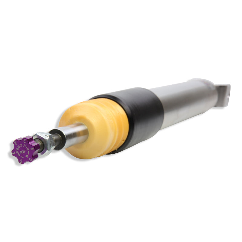 Cutting-edge motorsports technology for more performance on the road. Like every suspension product developed by KW automotive, the suspension manufacturer, and manufactured in Germany, the KW V3 Coilover suspension kit also provides a significant plus in safety reserves in road traffic. Thanks to the chassis with its high-quality dampers, springs, and elastomer spring elements, pitching and rolling movements during load changes such as evasive maneuvers, cornering, acceleration, and braking are significantly reduced. The braking distances are also shortened. Thanks to improved support and feedback, drivers not only feel safer but driving in everyday life becomes even safer. With compression and rebound stage damping, that can be set separately and independently of each other, the damper setup can be customized to your personal driving preferences or vehicle changes such as weight, tire characteristics, or altered vehicle rigidity. True performance optimization is only possible with this unique, patented system. For example, this allows the compression damping force to be increased and get more grip from the tires, to improve cornering behavior and reduce squat without simultaneously altering the rebound stage damping which is optimally matched to the spring rate, a scenario which results in reduced grip and the associated loss of performance. The KW V3 coilover kit is the ideal tool for performance-oriented drivers and experienced tuning enthusiasts who place a strong emphasis o n the overall performance of their suspension. The Variant 3 features patented TVR-A and TVC-A technology that provides separately adjustable rebound and compression damping. The extensive adjustment range of the independently configurable rebound and compression make it easy to directly influence the steering behavior, directional stability, grip and handling characteristics for confident and repeatable results at the limit of driving dynamics.