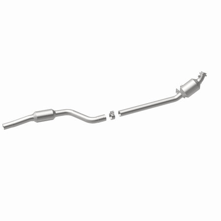 Keep the check engine light off with MagnaFlow OEM Grade Federal/EPA Compliant Direct-Fit Catalytic Converter 21-448. With features including free-flowing mandrel-bent tubing and highly corrosion resistant stainless steel construction, easily install this spun body converter yourself using the proper tools, no cutting or welding required. MagnaFlow's state-of-the-art metrology department uses the latest 3D scanning systems during research and development, so you can be confident that your new part will fit and function like the original equipment. By replicating the OE spun body design, the single laser fusion weld greatly reduces the possibility of a leak, and our compact, low-mass design also allows for greater thermal efficiency. Designed to fit the 2012-2016 Mercedes-Benz E350, 2013-2015 Mercedes-Benz GLK350, and more, this direct-fit catalytic converter also interchanges with OE parts 204 490 32 47 and 204 490 84 20, among others. Hardware is included to eliminate the hassle of working with corroded factory parts. This replacement part is designed to meet or exceed Federal emissions requirements set forth by the EPA, complying with legal standards for OBDII Federally registered vehicles with California or Federal/EPA Emission systems.