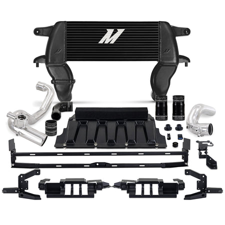 Unleash your 2021+ 2.3L EcoBoost Ford Bronco’s full potential with the Mishimoto High-Mount Intercooler Kit! Designed to allow your Bronco to breathe the coldest, densest air possible, this high-mount intercooler kit is comprised of our high-mount intercooler and performance intercooler pipe kit.----We’ve relocated the intercooler to the upper grille to allow better airflow at all times, even with winches, light bars, or larger bumpers installed. This location also helps protect the intercooler from obstacles on the trail. Our intercooler utilizes a 3.1 inch-thick bar-and-plate core that’s precision TIG welded to cast aluminum end tanks for superior durability and heat soak resistance. The weak plastic stock piping is replaced with high-flowing, durable aluminum piping and silicone boots with DuraCore technology. The larger volume of our pipes allows your 2.3L EcoBoost to breathe freely and make the most of its turbo, while the all-aluminum construction and DuraCore boots provide unmatched durability.----Durability is always a good thing, but it’s even better when it’s paired with performance. The high-mount intercooler boasts a 49-percent greater core volume and 93-percent greater external fin surface area than stock, which results in 21-degree cooler outlet temps over the stock intercooler. We also saw exceptional improvement in our trail simulation heat-soak testing where, after 6 back-to-back dyno runs, we still saw outlet temperatures 20-degrees cooler than stock.----This intercooler kit is available with a stealth black or sleek silver intercooler and micro-wrinkle black powder coated or polished pipes to match any style. Functionality of adaptive cruise control is retained utilizing a relocation bracket and 360-degrees cameras are unaffected. As with all our products, the Mishimoto 2021+ Ford Bronco 2.3L High-Mount Intercooler kit is backed by our signature Mishimoto Lifetime Warranty and comes with all necessary hardware for easy installation.