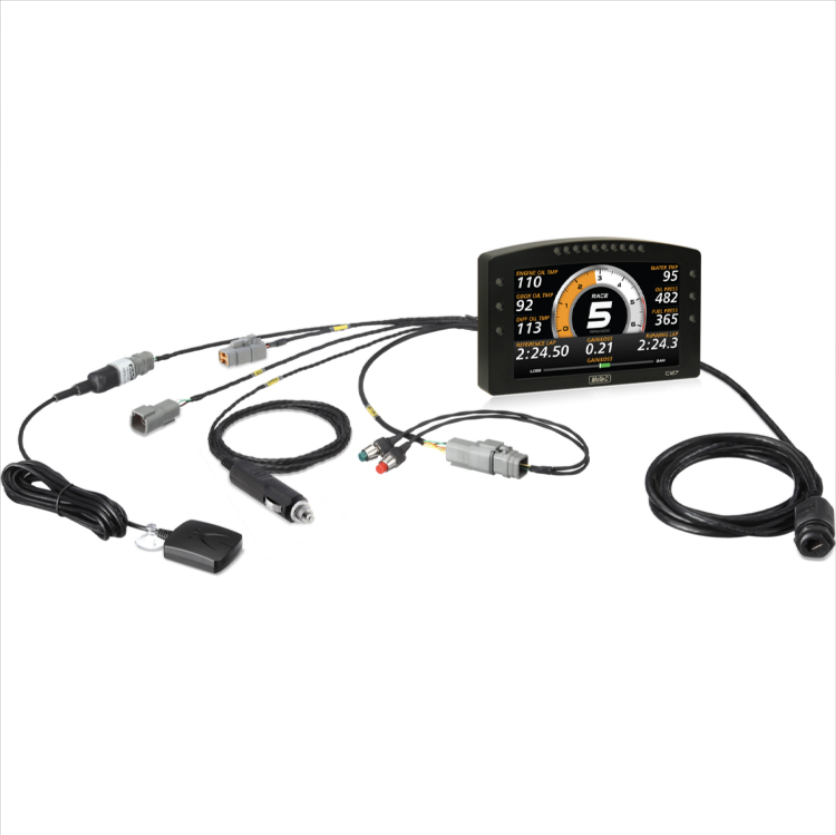 The C127 Race Display Kit is a cost-effective, full color, plug and play solution that offers professional level features without the hassle of a customized installation. It provides a complete, race-ready display system that can be adapted and expanded to suit various applications. The C127 in this kit can be upgraded to a logger at any time, with both USB and internal logging options available. The display can be fully customized using the optional Display Creator software, and can incorporate live video from an on-board camera input.
