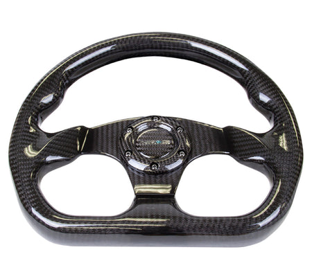 NRG Carbon Fiber Steering Wheel (320mm) Flat Bottom w/Shiny Black Carbon