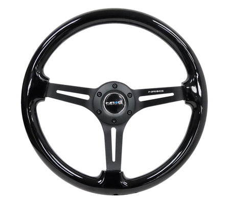 NRG Reinforced Steering Wheel (350mm / 3in. Deep) Blk Wood w/Blk Matte Spoke/Black Center Mark