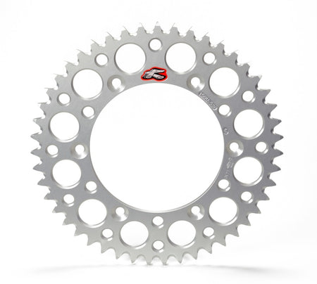 Renthal UltraLight Rear Chainwheels are CNC machined from 7075 T6 aluminum to extremely tight tolerances, 66% lighter than steel. Computer engineered and tested to ensure a precise fitment, concentricity and load dispersion with tooth profiling to provide maximum power transfer. A combination of high strength base material, cutting edge manufacturing methods and exceptional hardwearing surface treatments its clear to see why Renthal's light weight all aluminum rear sprockets can be found on the rear wheels of many factory race team machines.