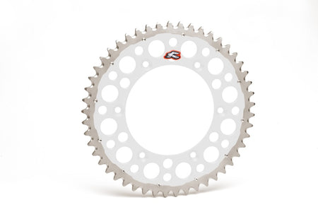 Renthal Twinring motocross rear sprocket was developed as the ultimate dirt bike rear sprocket for those looking to ride more and work less. The unique, dual-material design combines a hardened steel outer chain ring that is heated to 200degreeC before being permanently fitted to our Ultralight aluminum inner, creating a permanent bond for the life of the sprocket.