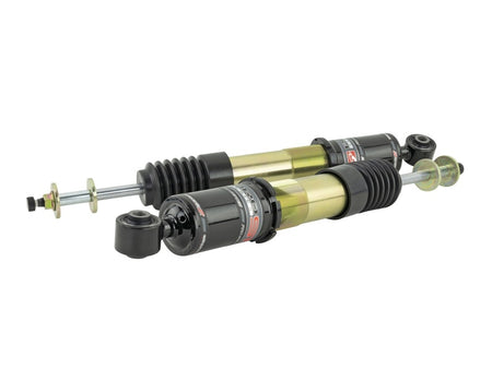 Engineered to racing specifications, tested and proven over decades on winning racing teams. Integrating the highest-level technologies into an affordable street-spec coilover, our systems are a perfect, affordable solution for your daily driven performance vehicle. Built with daily driven sports cars in mind, our Pro-ST shock absorbers are shorter than factory, lowering the vehicle approximately 3- inches while still retaining full shock travel. This, coupled with the 12-way damping adjustability and stiffer springs, allows you to adjust to the perfect setting for the driving environment. Large 52mm seamless carbon steel mono-tube shock bodies provide strength and provide room for a larger hydraulic piston and valves, more shock oil, and an enlarged nitrogen chamber. All of these upgrades add up to huge jumps in compression and rebound response, vastly improved handling characteristics, and extreme durability even in the harshest of conditions. Externally, the shock bodies are threaded along their length to fit spring preload adjustment collars and the internally threaded lower shock mount and collar. This allows for independent changes in ride height and spring preload, giving the ability to tune each corner's weight to achieve optimal 4-wheel corner balance without sacrificing ride quality. Additionally, the shock body and threads are protected from the elements with gold-colored zinc electroplating. After rigorous testing, we chose to fit linear rate springs instead of progressive. Featuring spring rates of 10kg/mm up front and 8kg/mm in the rear, the linear spring offers more consistency under all different measures of weight loading while cornering and hitting bumps. This offers the most predictable vehicle feedback in all driving situations. Each spring is made from the highest quality AE9254V Chrome Vanadium forged to work with our oil-nitrogen filled strut to provide the greatest possible balance of street and track performance.