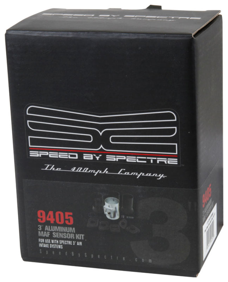 The Spectre 3 inch Aluminum Mass Air Flow Sensor Adapter Kit is designed for the majority of GM, Ford, Nissan, Honda, Toyota and other vehicles with drop-in style mass air flow sensors. Featuring a polished aluminum body, this kit contains 3 flow calibration tubes measuring - 2 1/4, 2 1/2 and 2 3/4 inches. This bracket can be welded or couplers can be used to attach to intake tubes, reducing the 3 inch intake system to the correct diameter at the sensor to retain calibration. This kit also contains 5 mass air flow sensor adapters and screws for an easy install.