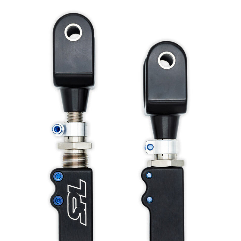 SPL Toyota GR Corolla rear upper camber arms sharpen suspension response and provide a more predictable on-limit feel by eliminating bushing deflection. For peak handling performance, tire wear, and braking, the SPL RUAs provide a huge adjustment range to dial in the ideal amount of camber, especially for lowered cars. For advanced users with more aggressive builds, the wide adjustment range can even be used to make small kinematic changes to achieve a more desirable bump geometry when combined with adjustable lower arms, and the outboard, clamp-style double adjuster allows for quick adjustments that are easier to reach and free of jam nuts.BenefitsLarge Camber Adjustability RangeEliminates Bushing DeflectionImproves Rear Suspension ResponseEasier, On-Car Adjustment + No Jam NutsSelf-Cleaning, US Made, PTFE-Lined FK BearingsMaterials6061-T6 Aluminum Clevis and Arm (Anodized Black)6061-T6 Aluminum Spacers and 360º Clamp4130 Chromoly Steel Double Adjuster (Electroless Nickel Plated)Ti-6Al-4V Titanium 1/4-20 Socket Head Allen Screws (Anodized Blue)FK PTFE-lined Spherical BearingsEasy, On-Car AdjustmentsThe double adjuster is mounted outboard, near to the knuckle, to improve accessibility. Simply loosen the 1/4-20 titanium hardware and turn the adjuster to achieve the desired amount of camber. Lastly, tighten the 1/4-20 titanium hardware to lock it in. No more wandering alignment specs as you try to hold one end and tighten the other.Suitable for all uses, from daily driver to race car.
